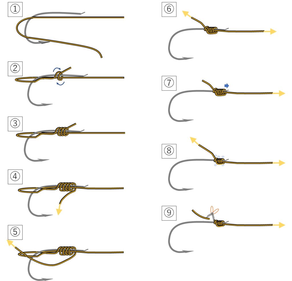 結束力が高く、多くの針に使える万能ノットとして広く使われています。