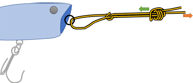 フリーノットは、ルアー(ホッパー)などへの結びで仕掛けと遊びがある結びの中でもよく使われる結び方です。